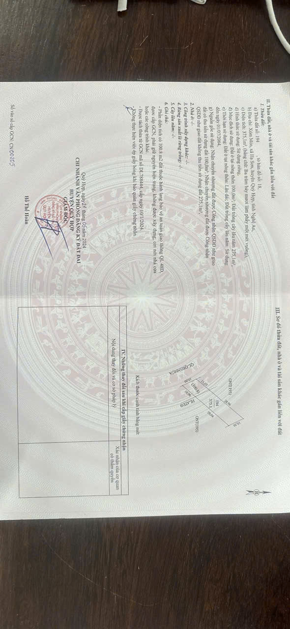 ♦ Vị trí:Thửa đất sô 194, xóm Món , xã Hạ Sơn , huyện Quỳ Hợp , tỉnh Nghệ An