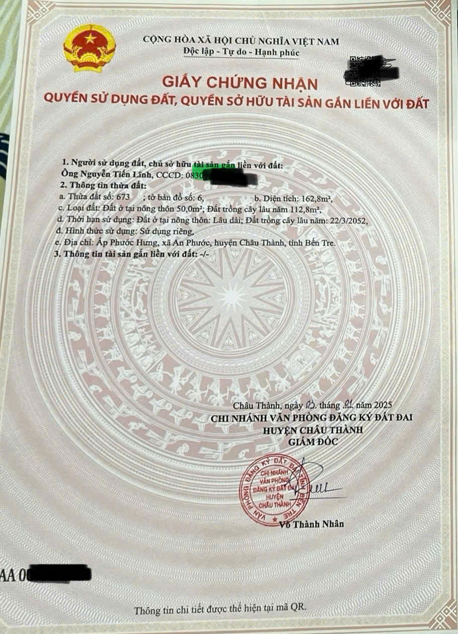 BÁN ĐẤT XÃ AN PHƯỚC – CHÂU THÀNH – BẾN TRE