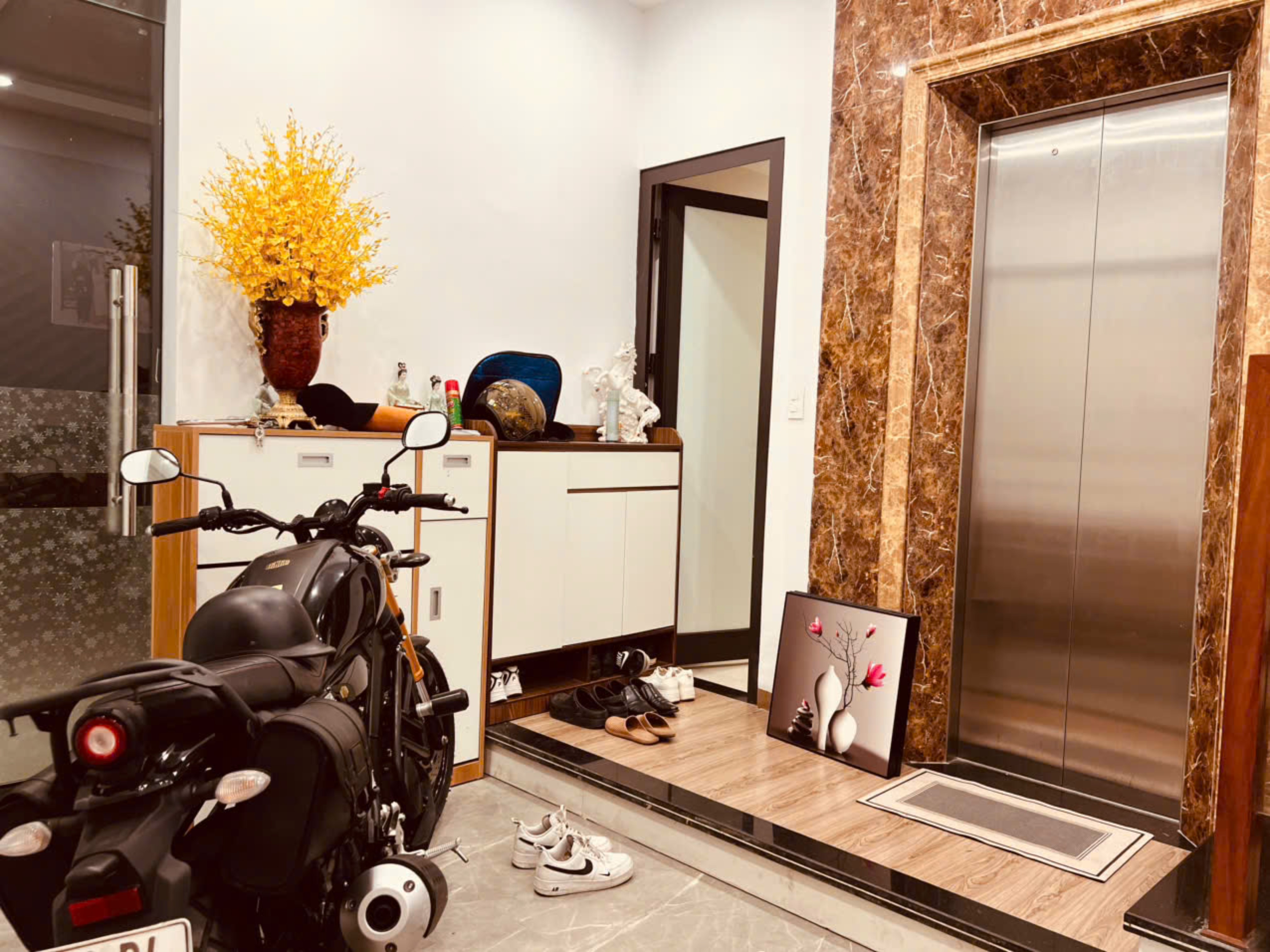 Tầng 1 có sảnh để xe máy rộng rãi