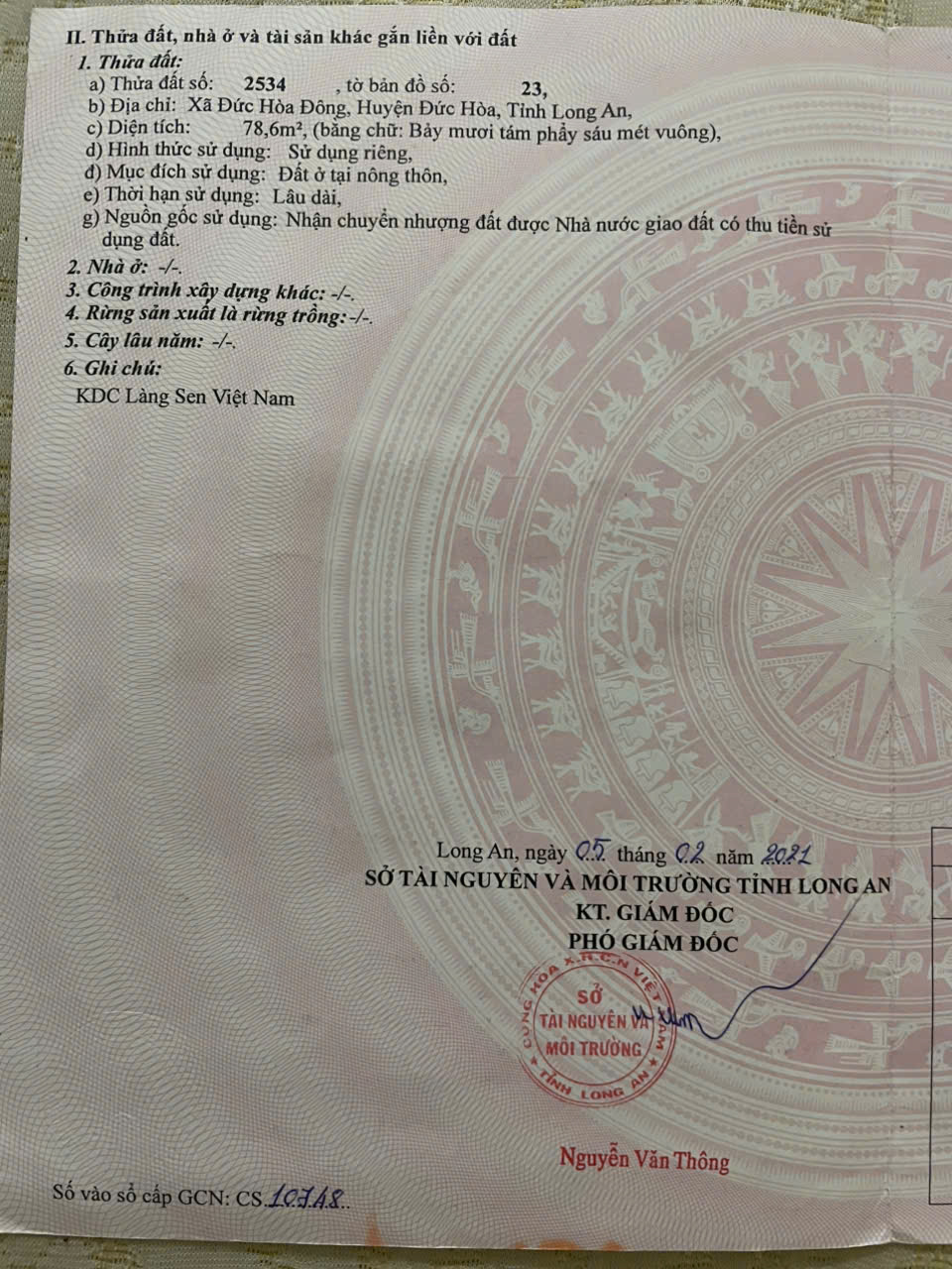 CẦN BÁN GẤP LÔ ĐẤT 78M2 KĐT LÀNG SEN VIỆT NAM – MẶT TIỀN TỈNH LỘ 10 – SỔ HỒNG RIÊNG – GIÁ CHỈ 1,7 TỶ