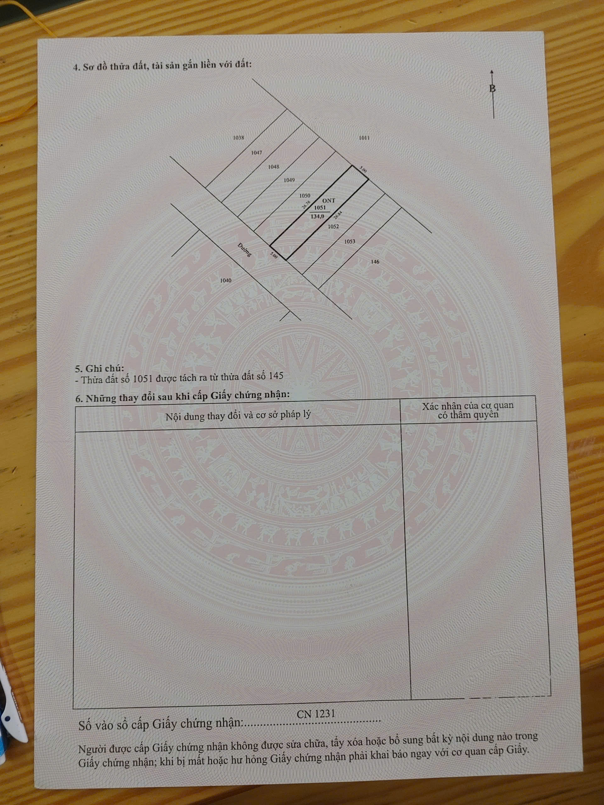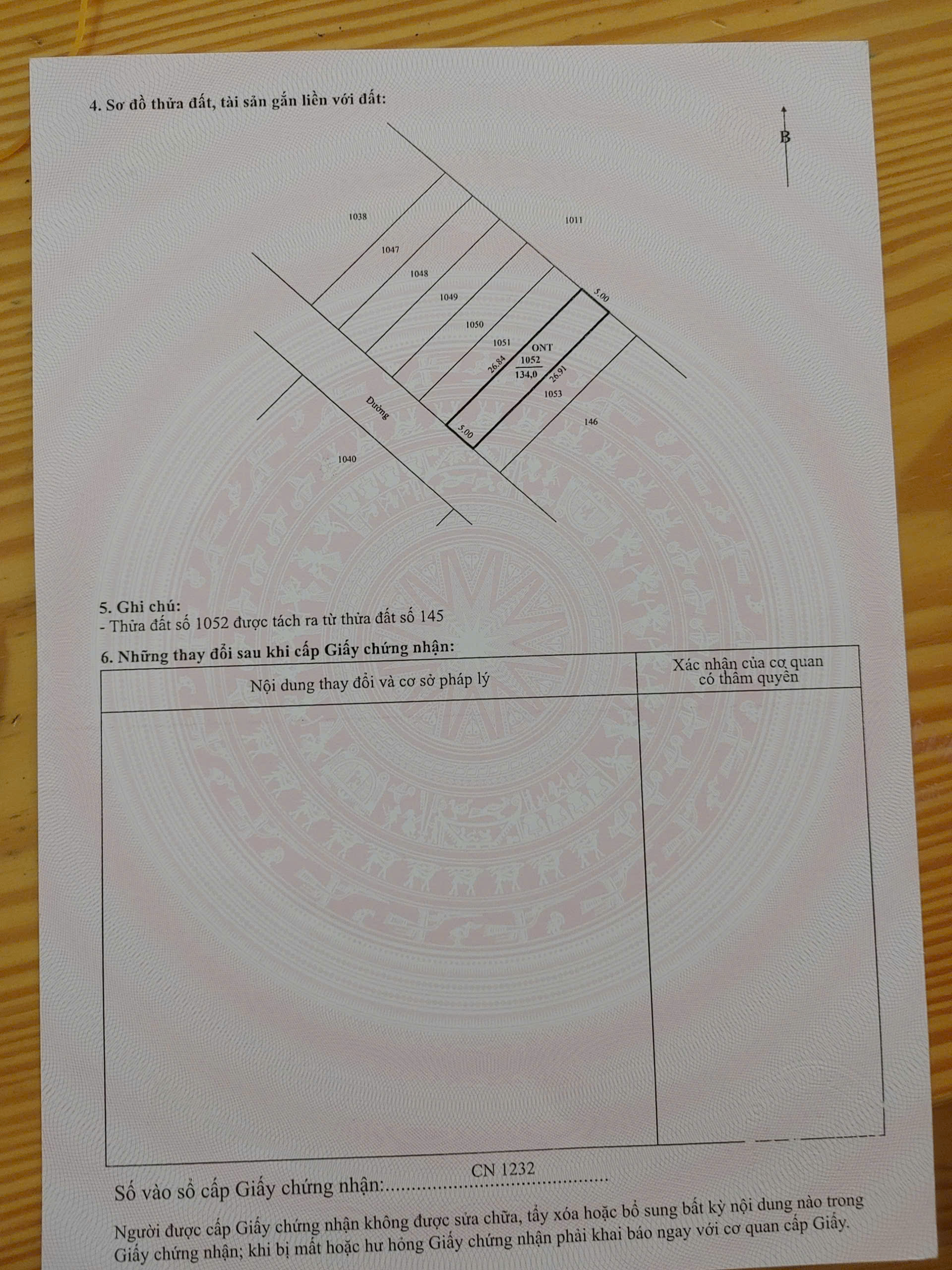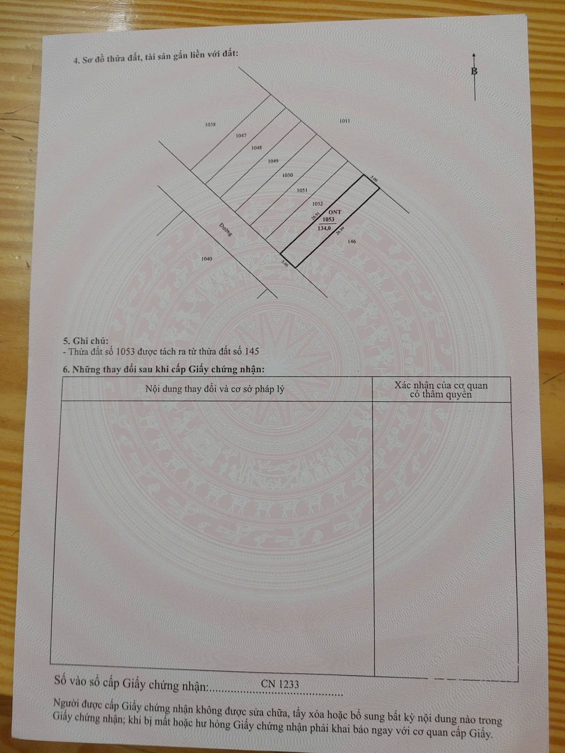 - Diện tích 1 lô :134m2 full thổ cư