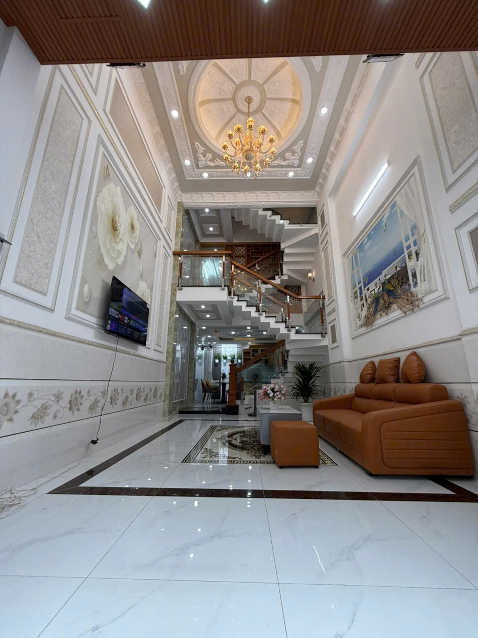 - Nhà một trệt , một lửng ,3 lầu , ngang 4dài 14 sổ công nhận 53,8m2 diện tích sàn 201,6 m