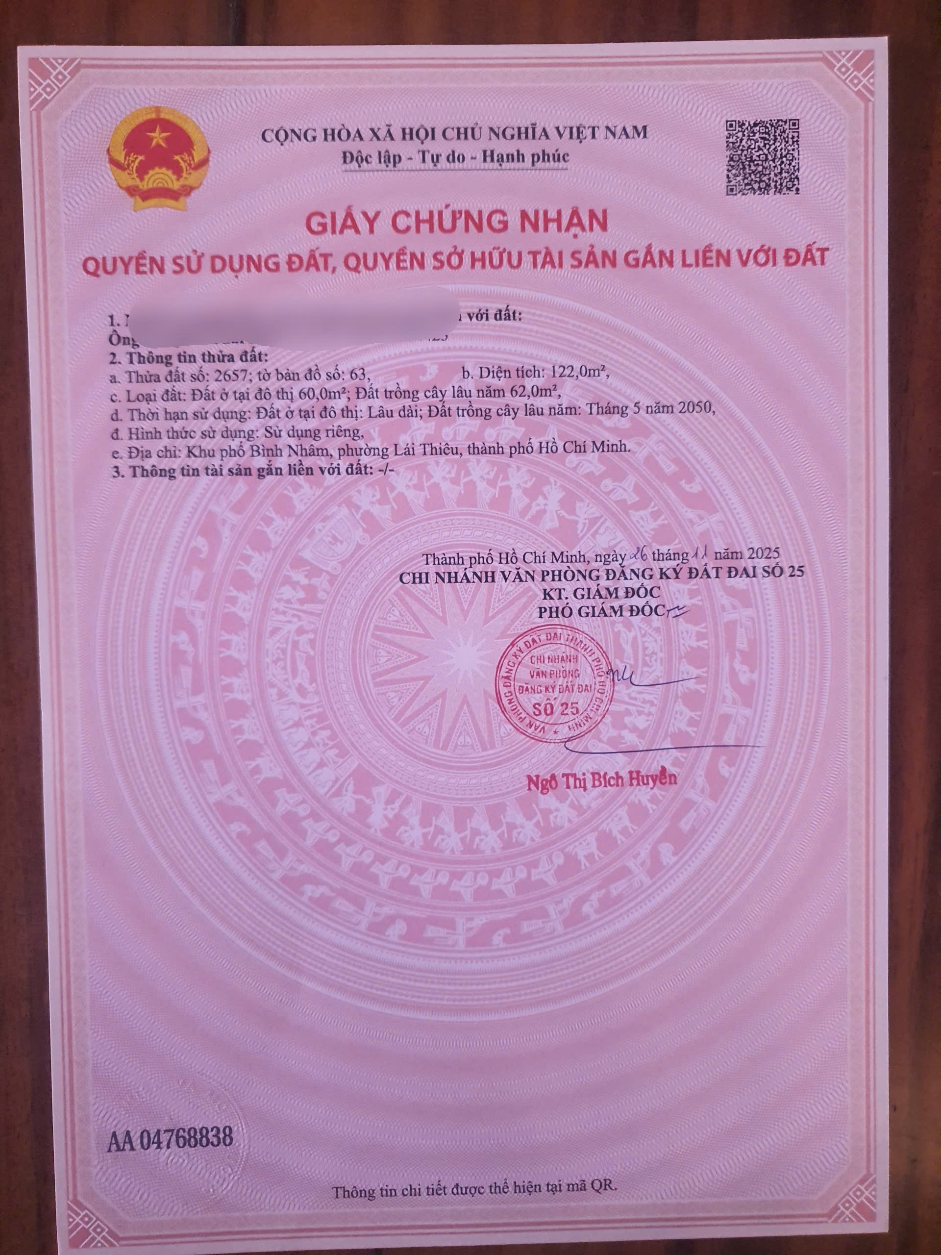 - Thổ cư: 60m²