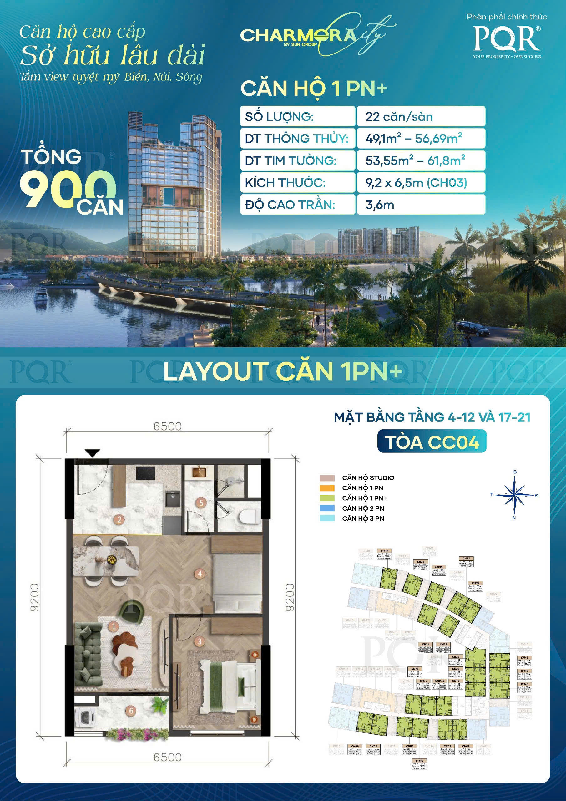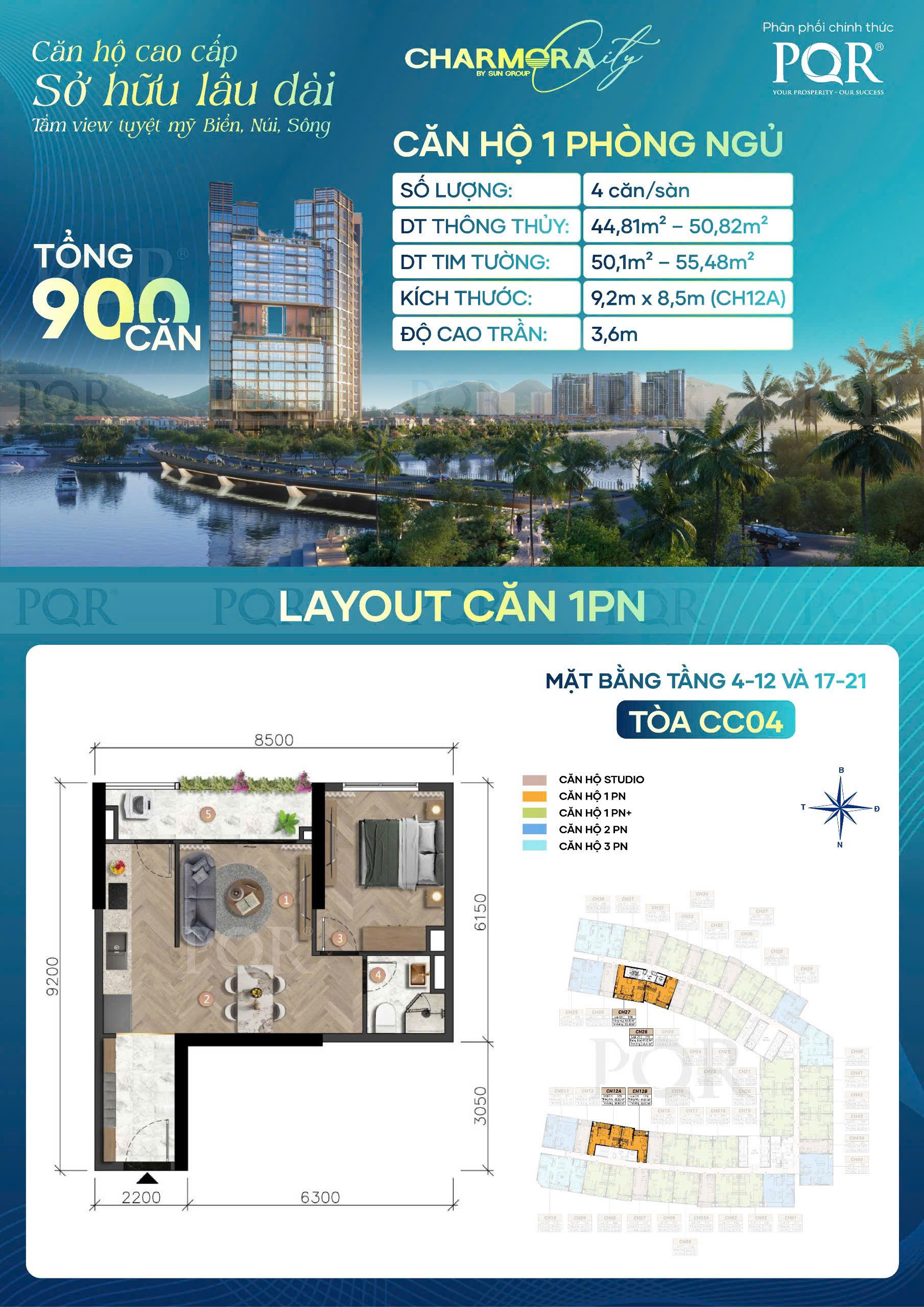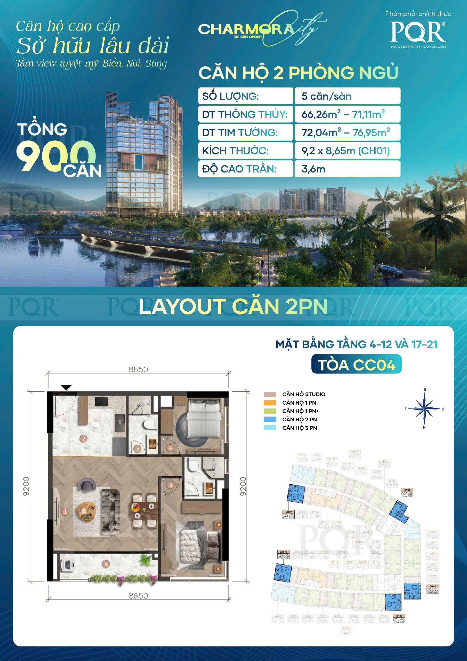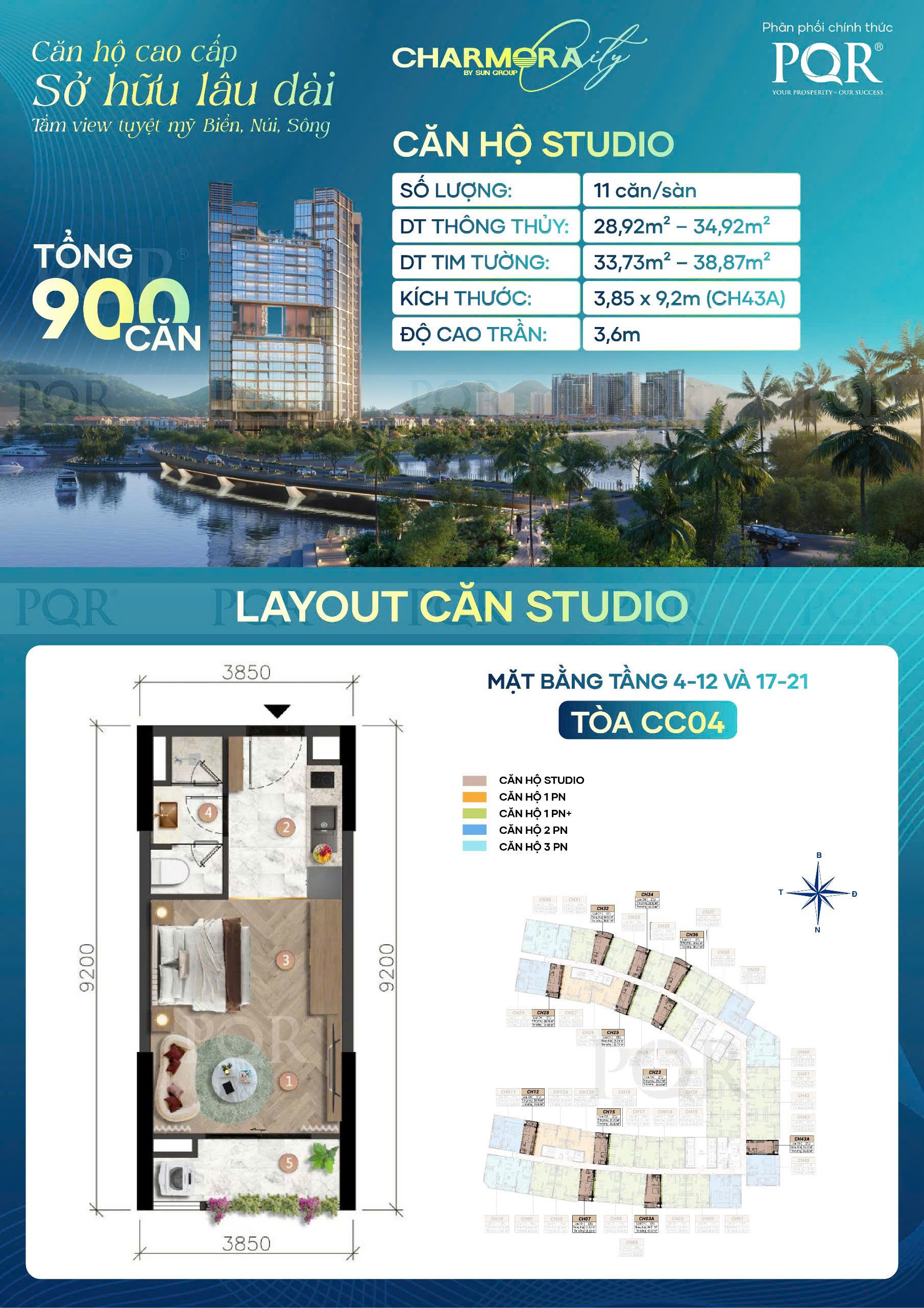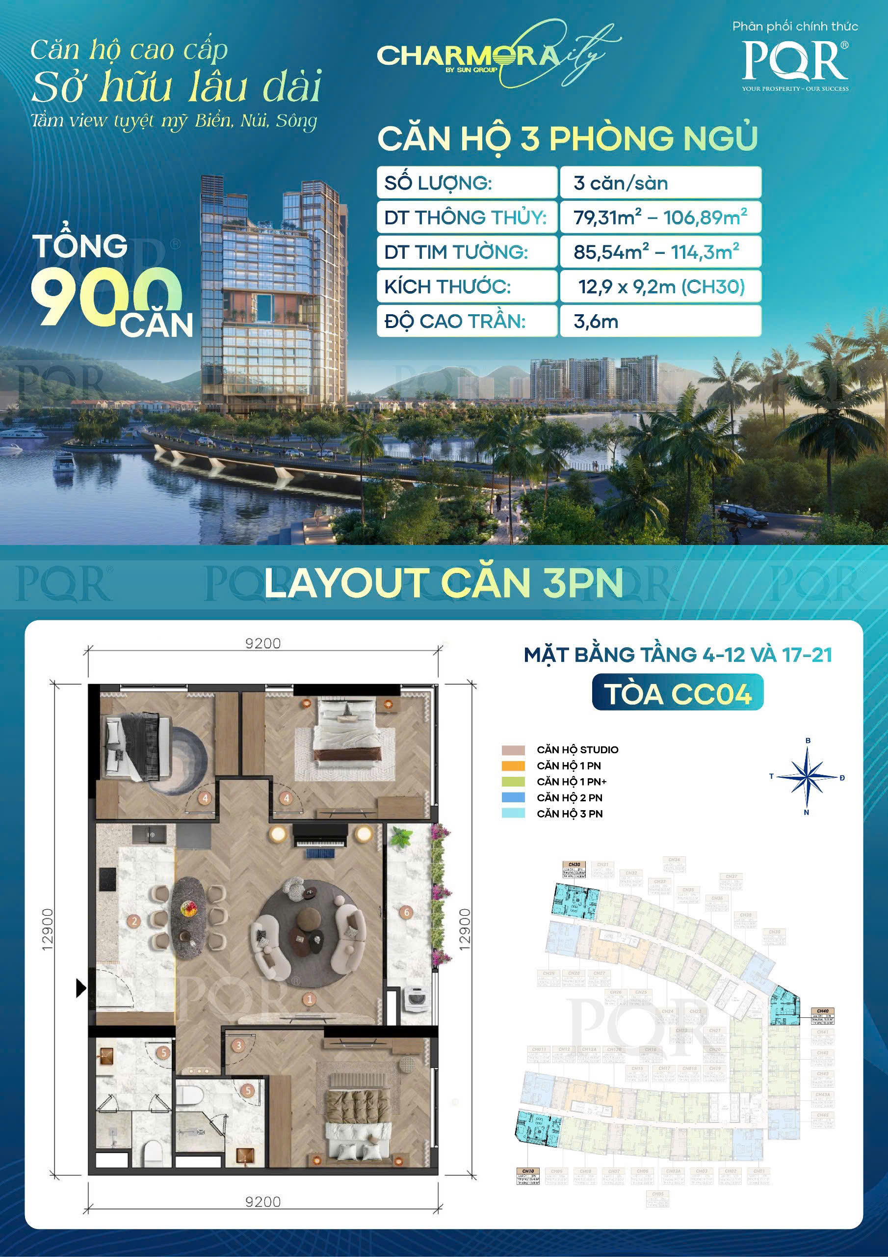 900 căn hộ cao cấp - chiều cao tầng 3.6m