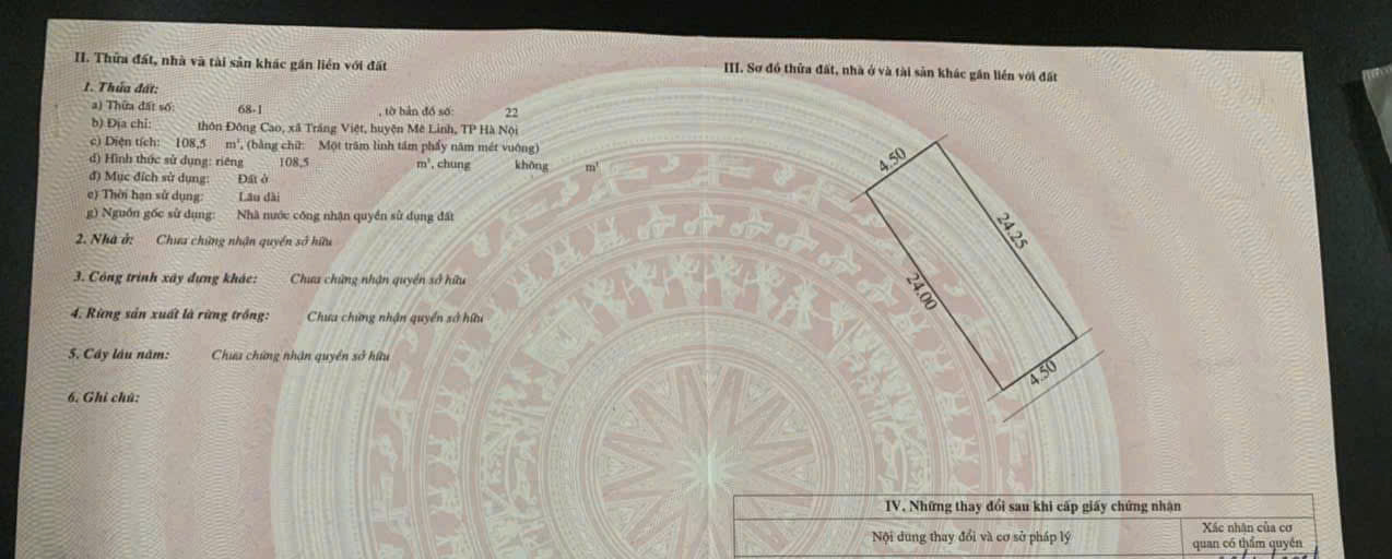 CHÍNH CHỦ CẦN BÁN 2 LÔ ĐẤT ĐẸP TẠI THÔN ĐÔNG CAO – XÃ TRÁNG VIỆT – HUYỆN MÊ LINH – HÀ NỘI
