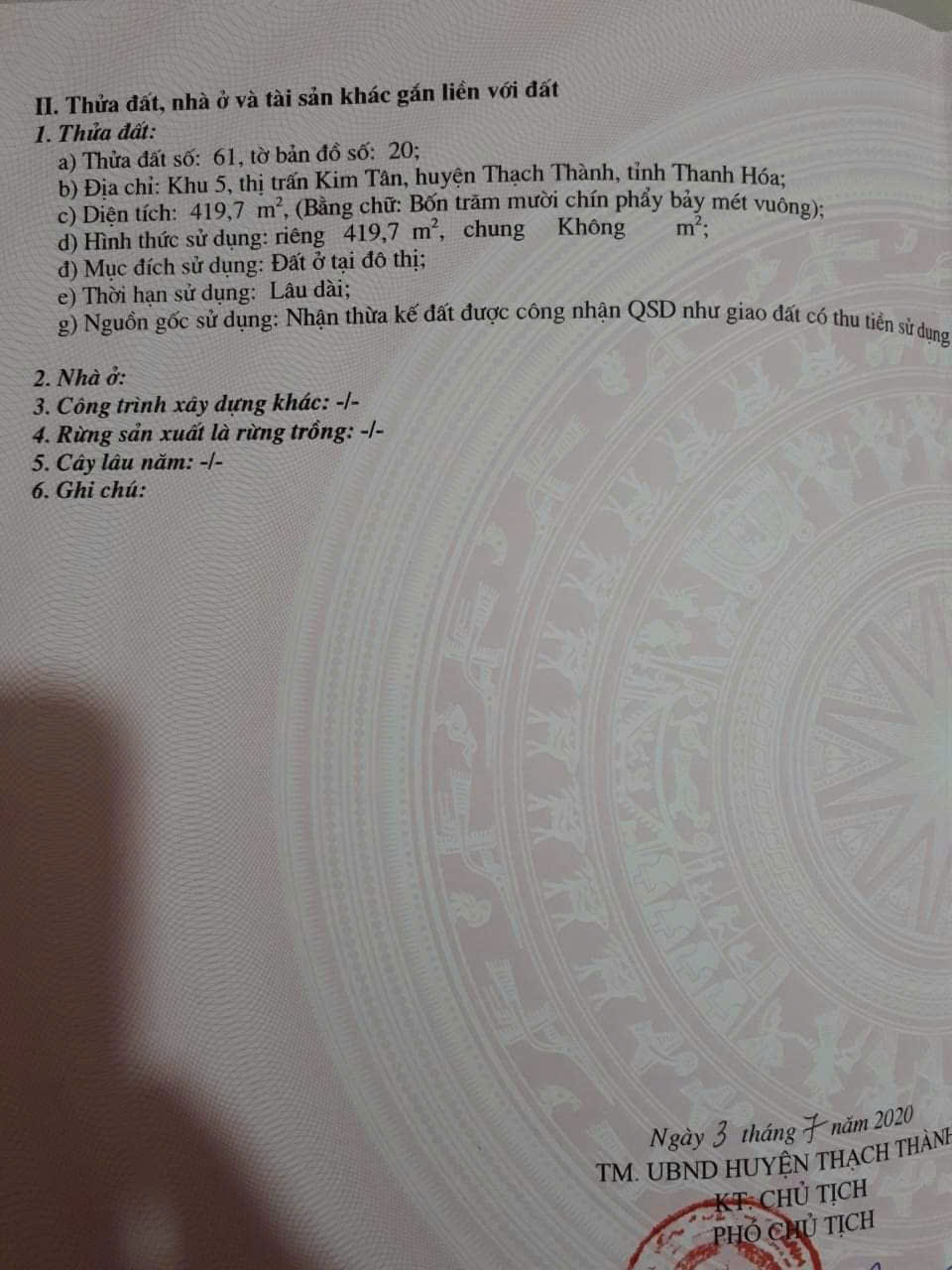CHÍNH CHỦ CẦN BÁN ĐẤT MẶT ĐƯỜNG LÊ THÁI TỔ – TRUNG TÂM XÃ KIM TÂN, HUYỆN THẠCH THÀNH, TỈNH THANH HÓA