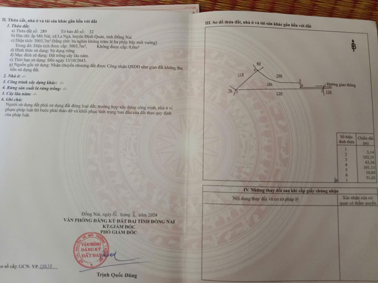 Địa chỉ tài sản: Ấp Mít Nài, Xã La Ngà, Huyện Định Quán Đồng Nai