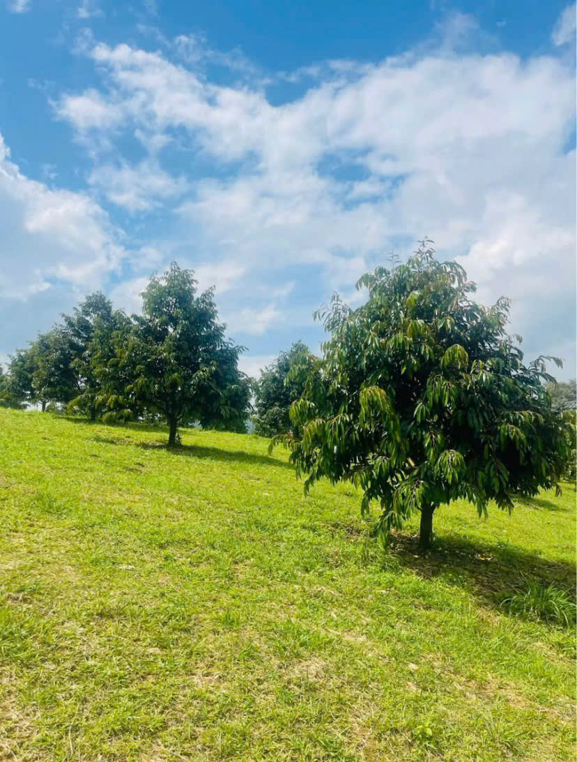 ►  Hiện trạng: Trồng khoảng 220 cây sầu riêng Thái 3 năm tuổi, sinh trưởng tốt, đang bắt đầu vào mùa bói trái