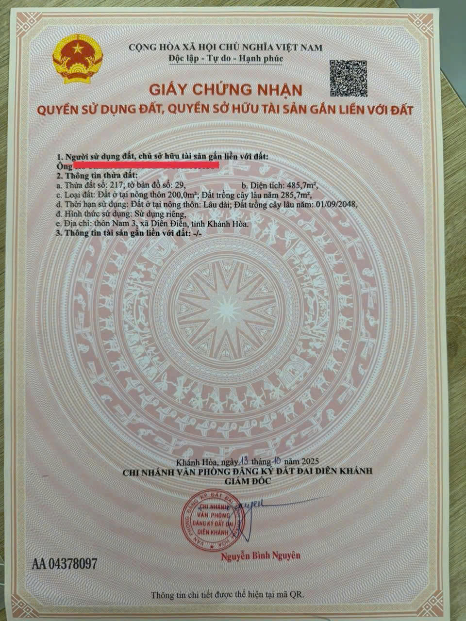 - Địa chỉ: thôn Nam 3- xã Diên Điền- tỉnh Khánh Hoà