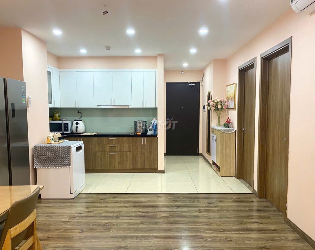 -Diện tích 102m², gồm 3 phòng ngủ, 2 vệ sinh, full nội thất (tủ lạnh, điều hòa, máy giặt, máy rửa bát...). Có lỗi để ô tô. Căn hộ nằm tại tầng 7, hướng cửa Tây, ban công Đông Nam.
