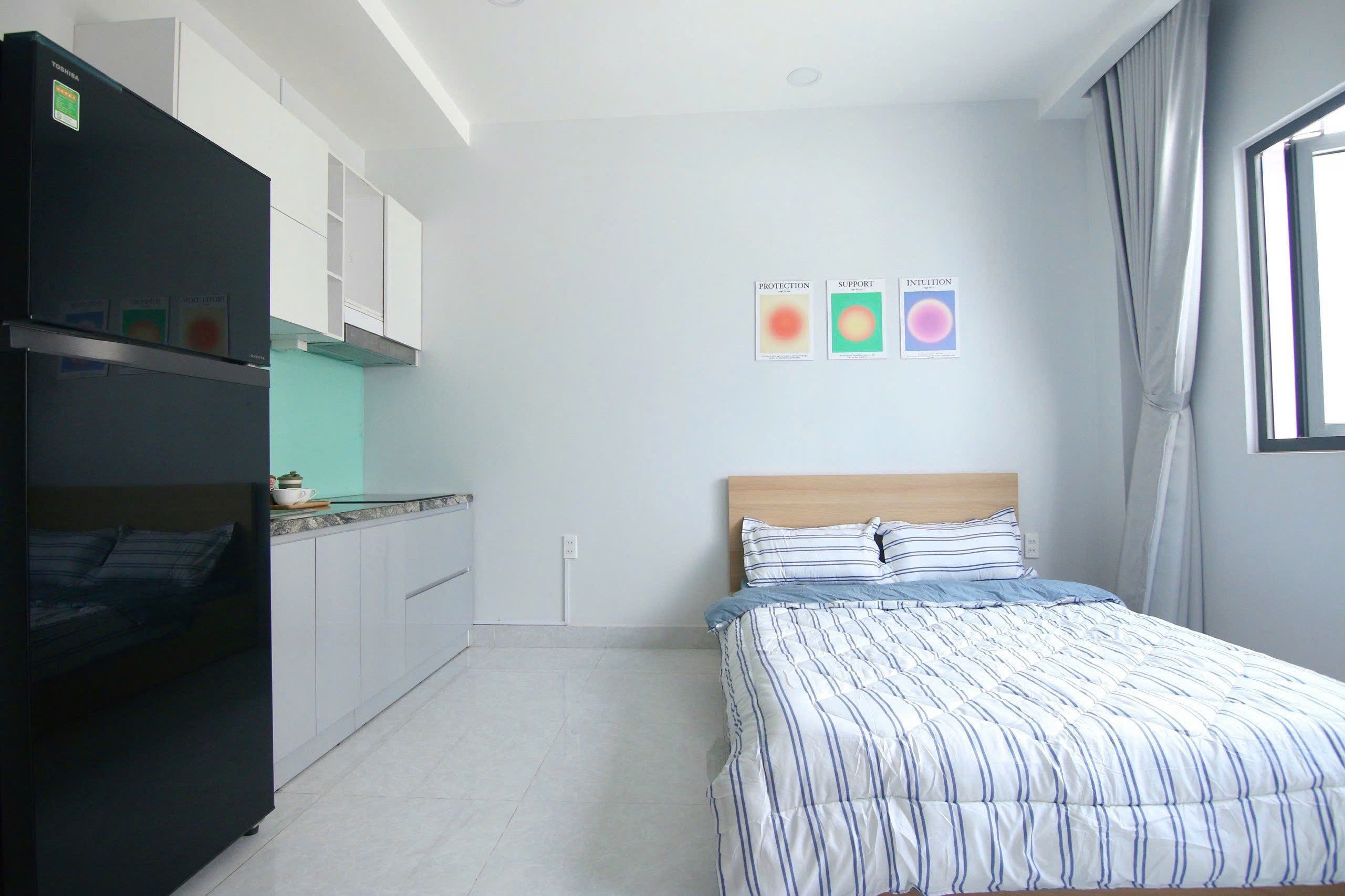 – Phòng 302: cửa sổ lớn 4m thoáng mát, view ngoài, full nội thất sạch đẹp, đang trống