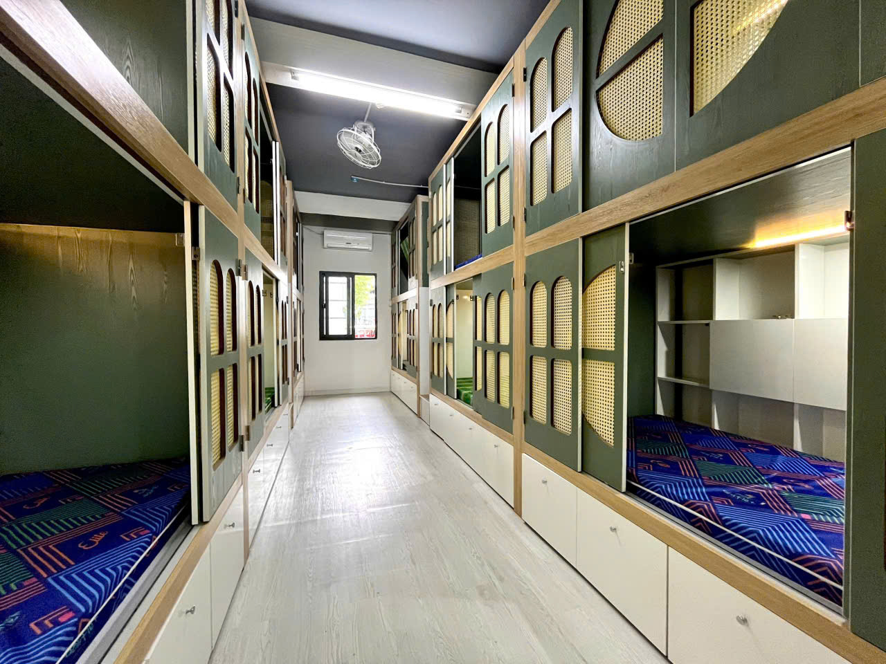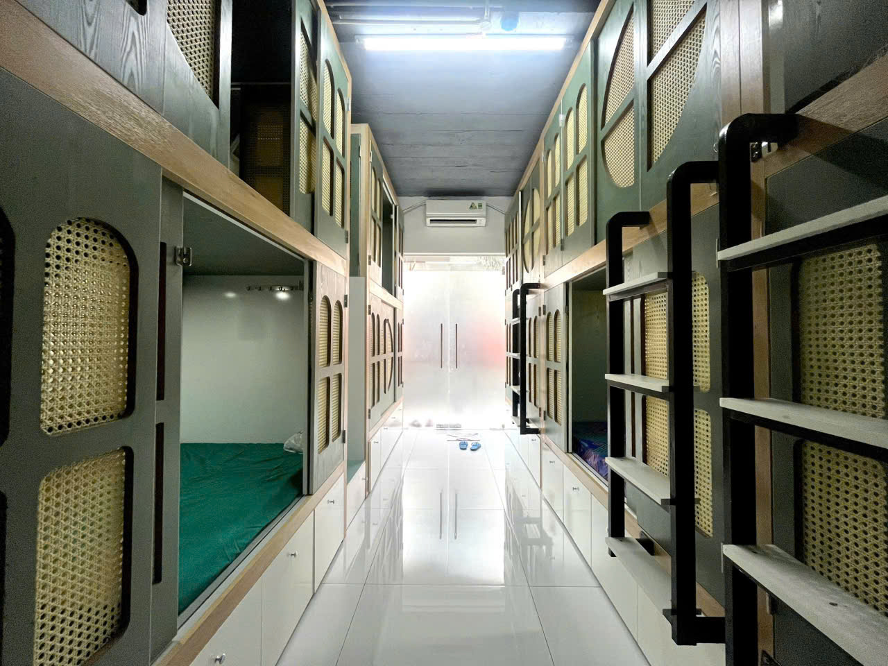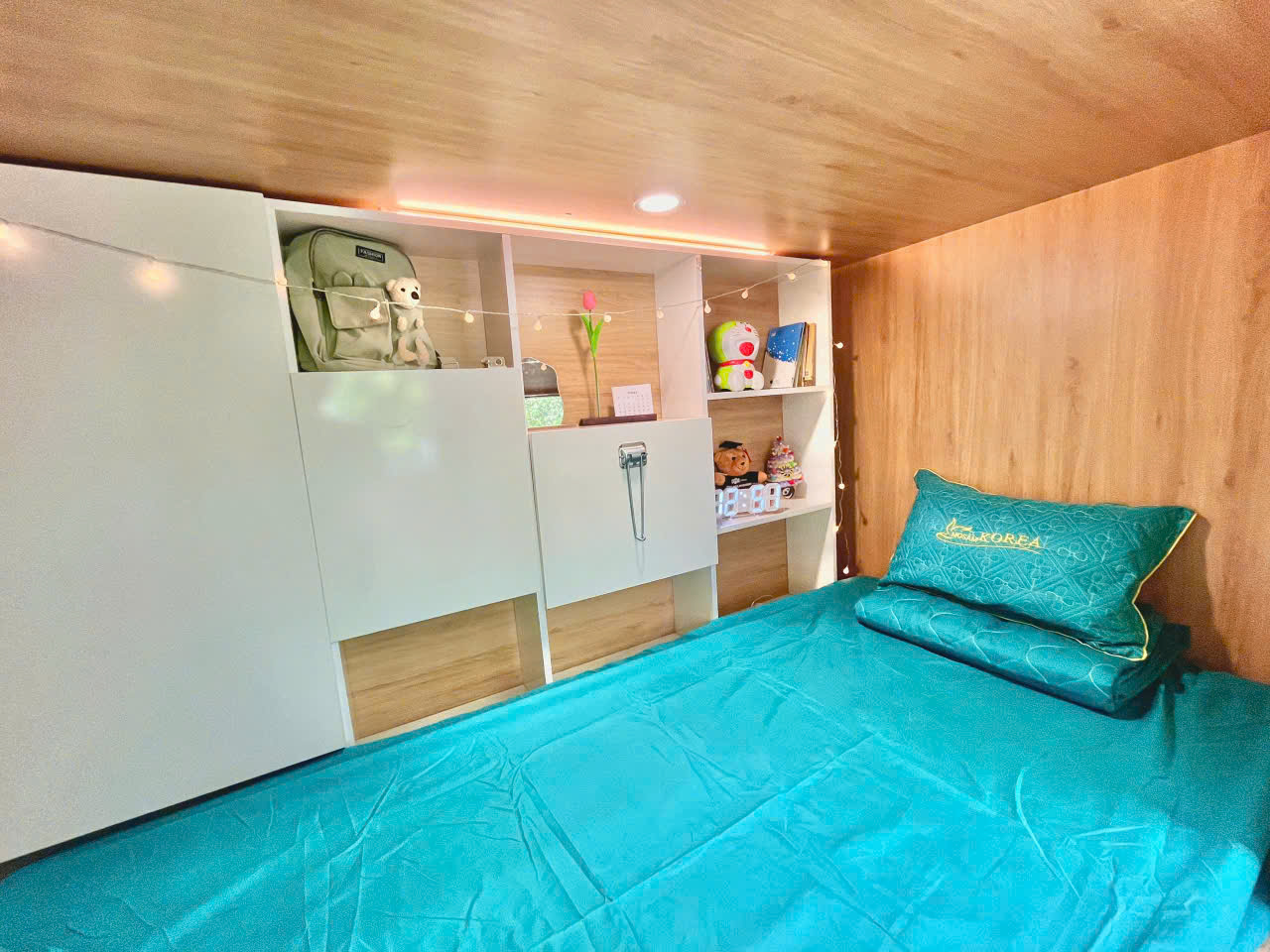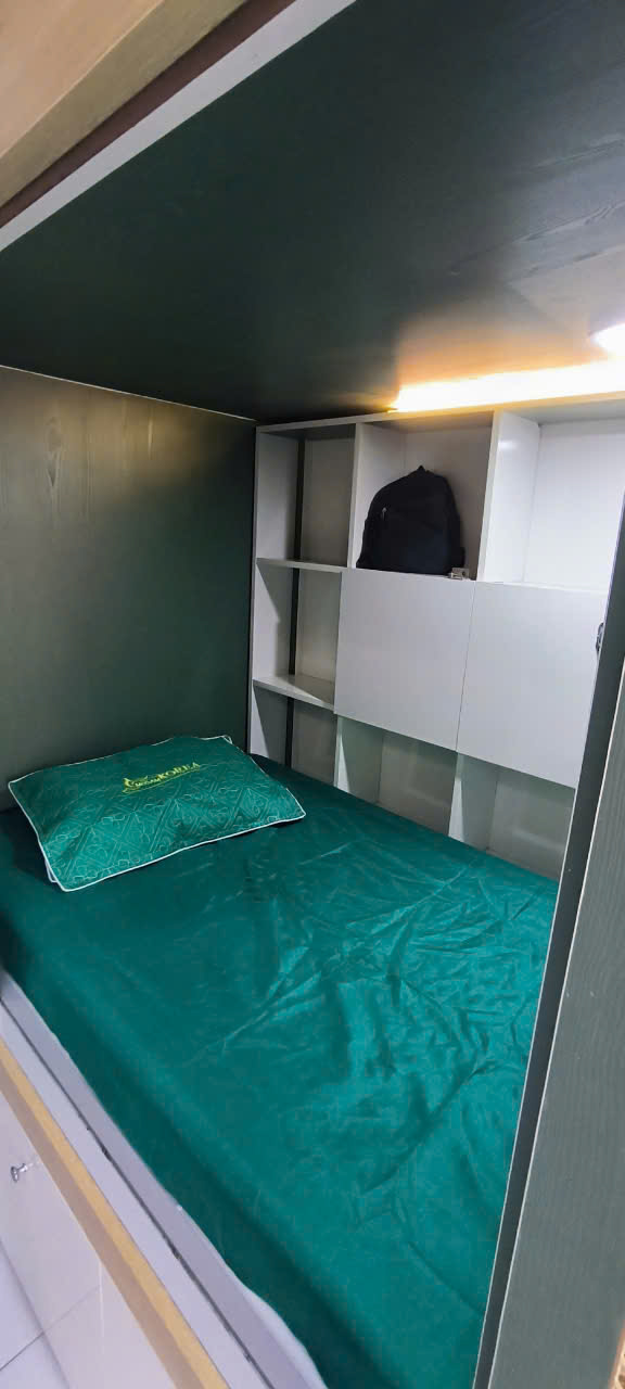 + Giường riêng có tủ đồ, kệ, locker, nệm, chăn ga gối đầy đủ