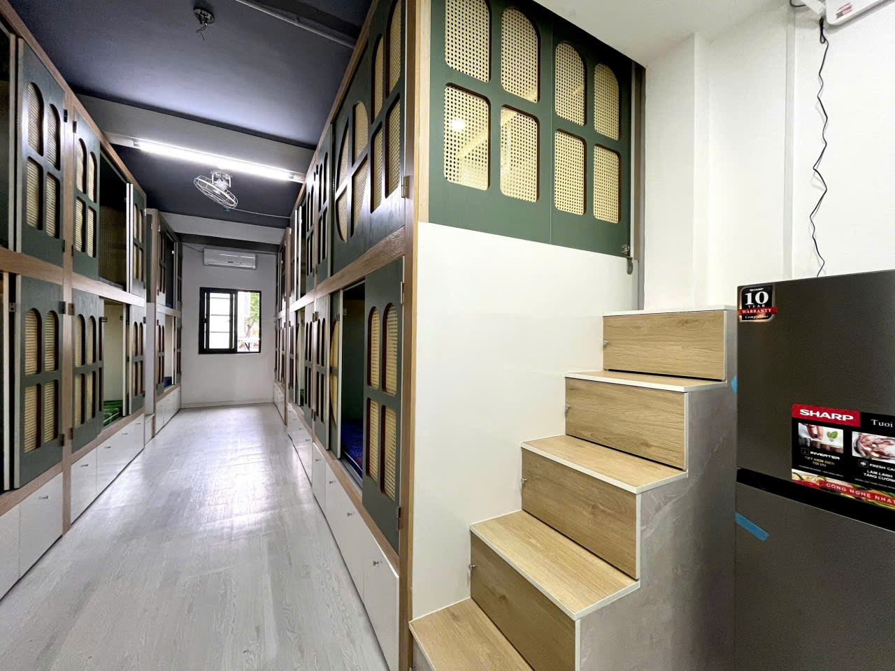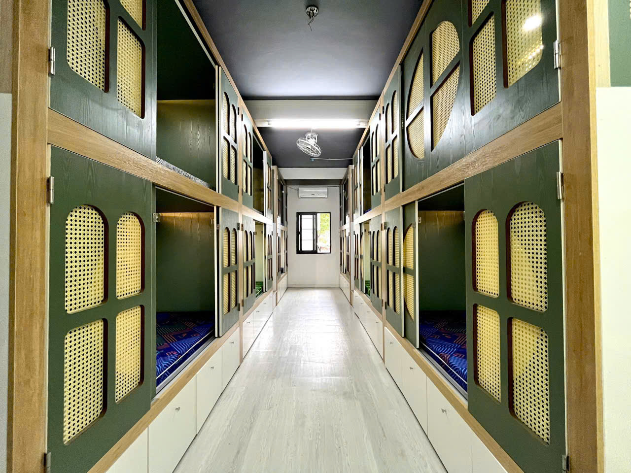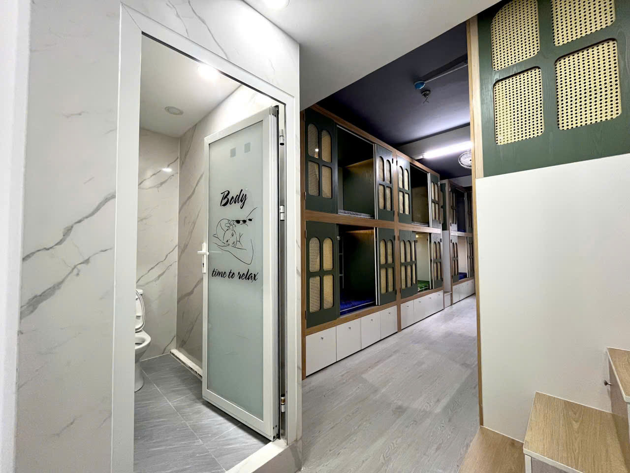 + Giường riêng có tủ đồ, kệ, locker, nệm, chăn ga gối đầy đủ