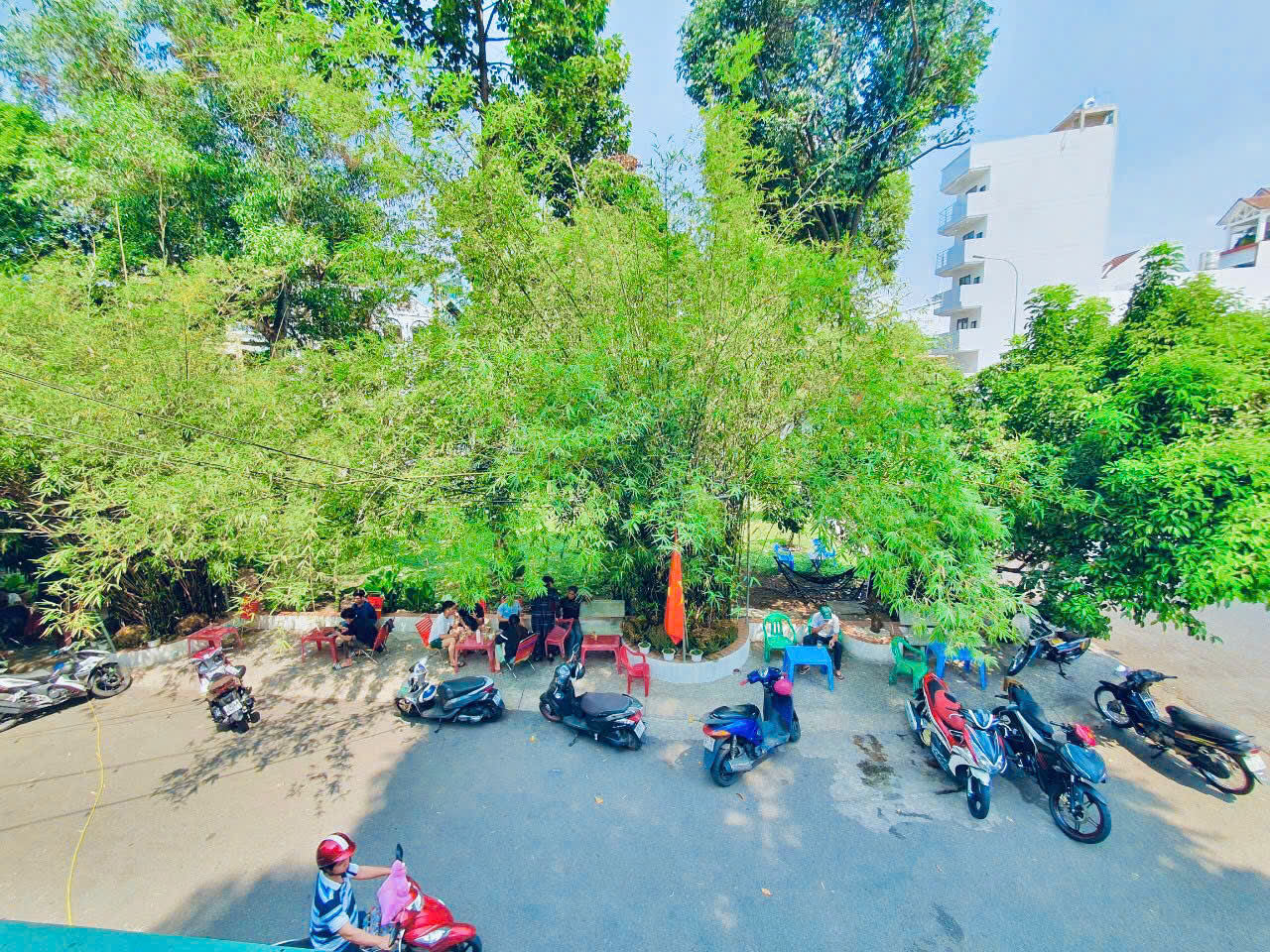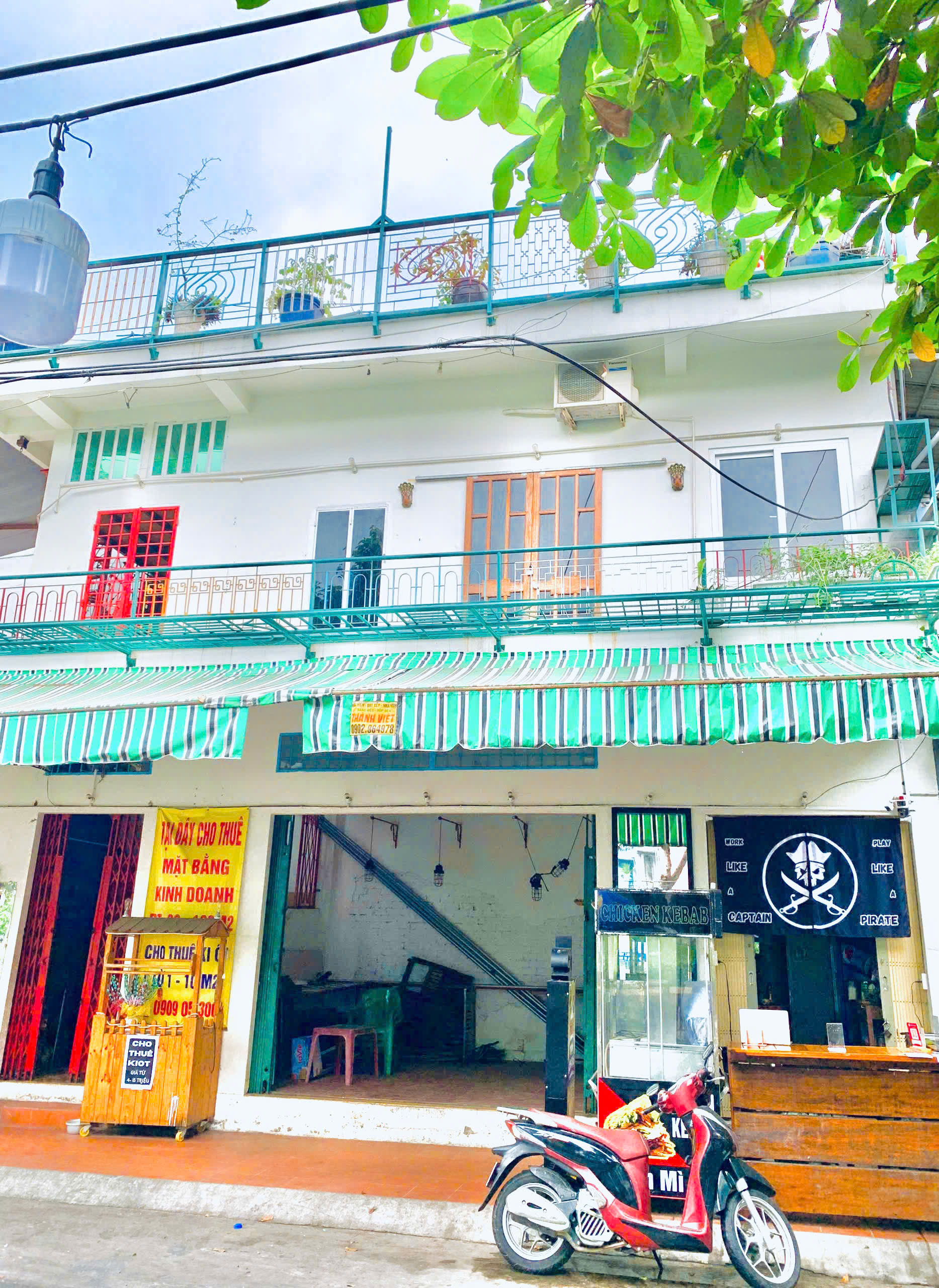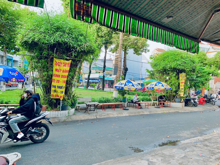 - Vỉa hè đối diện (33m²): bàn ghế ngoài trời, dù đèn sẵn 24/24 sử dụng.
