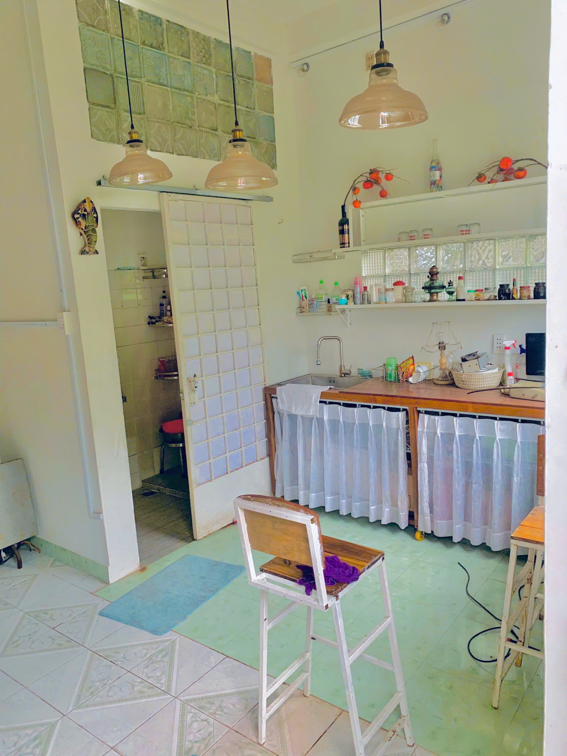 - Tầng 1 (45m²) + Gác gỗ (12m²) hành lang + WC, sẵn máy lạnh, nội thất.