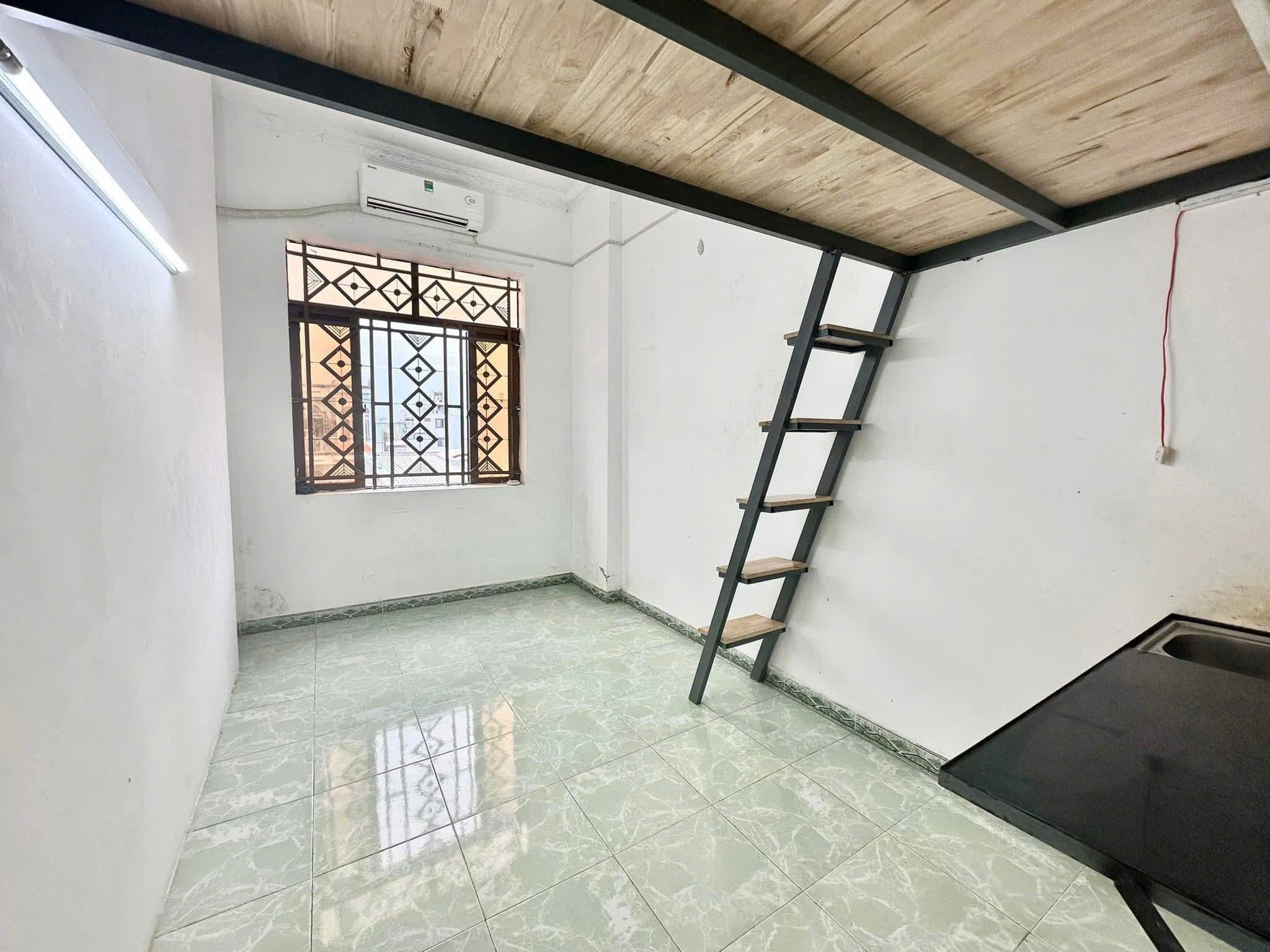 Diện tích: 25m², có gác lửng, cửa sổ thoáng mát