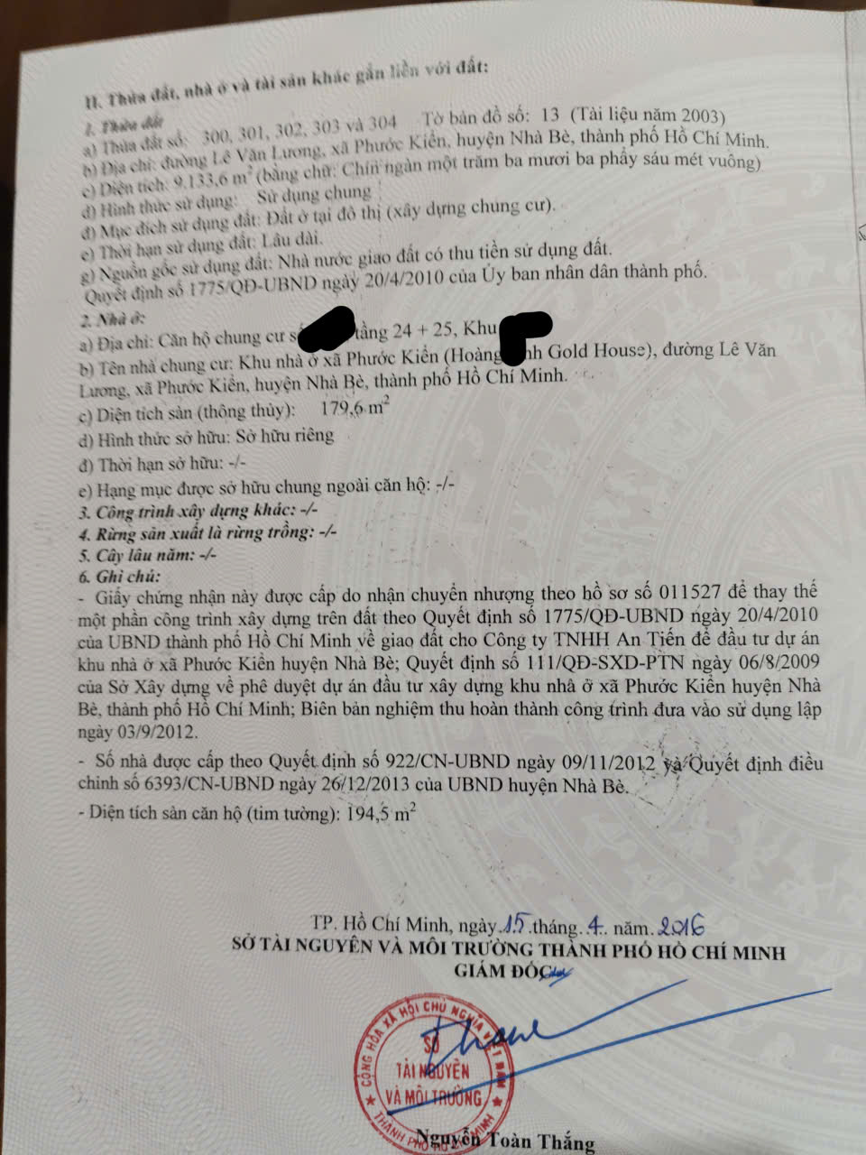 - Thông tin căn hộ: