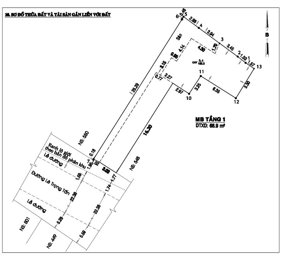 ♦ Diện tích: 166m² – mặt tiền giá trị