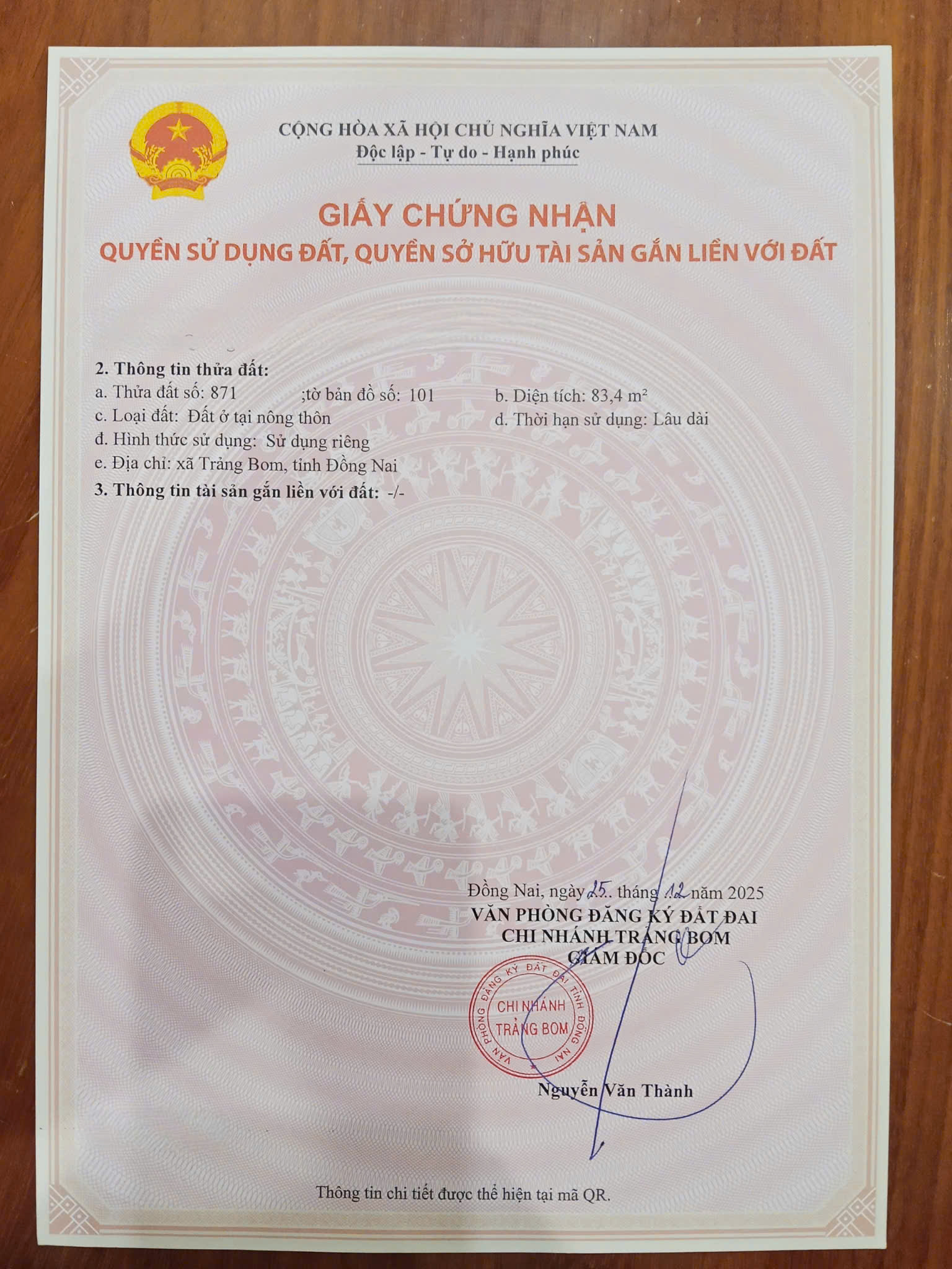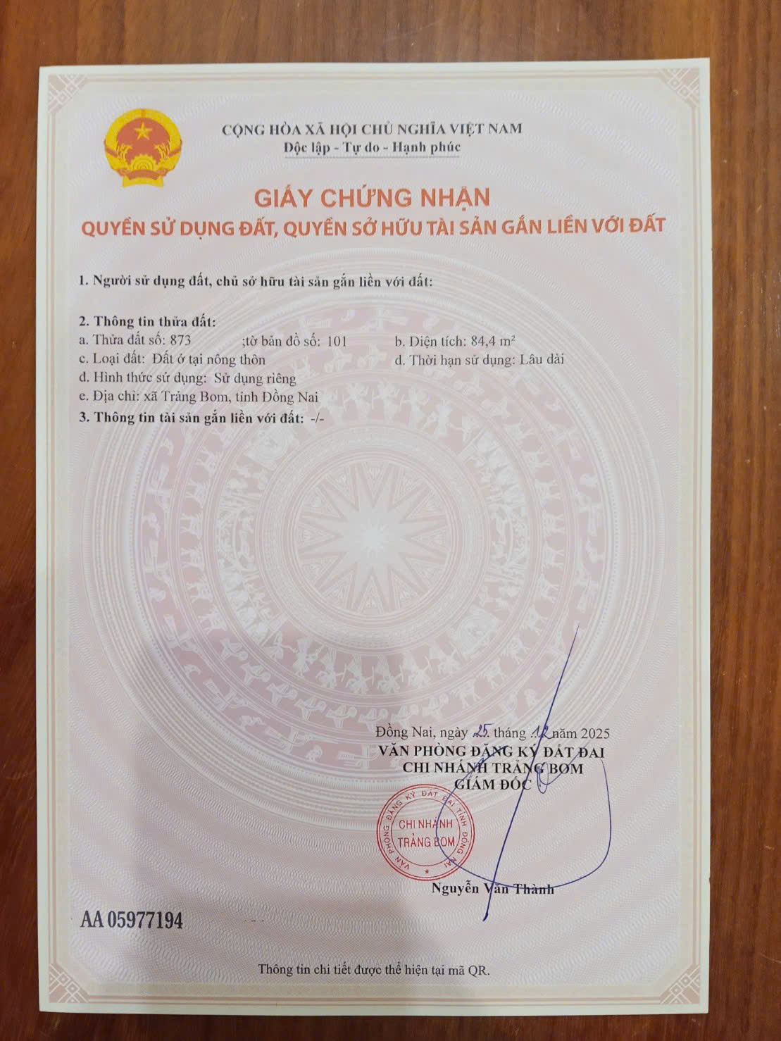 Chính thức có 3 nền sổ riêng vị trí đẹp ngay trung tâm Trảng Bom