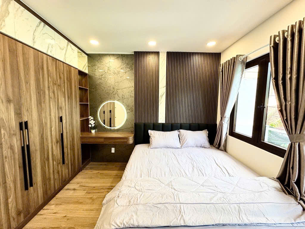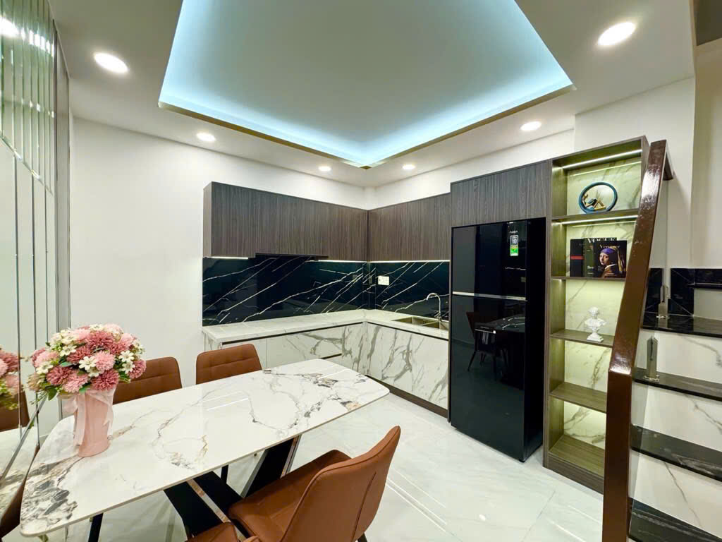 Kết cấu gồm: trệt 3 Lầu Sân Thượng (4 phòng ngủ được trang bị Full nội thất cao cấp, phòng thay đồ master, 3 Toilet)