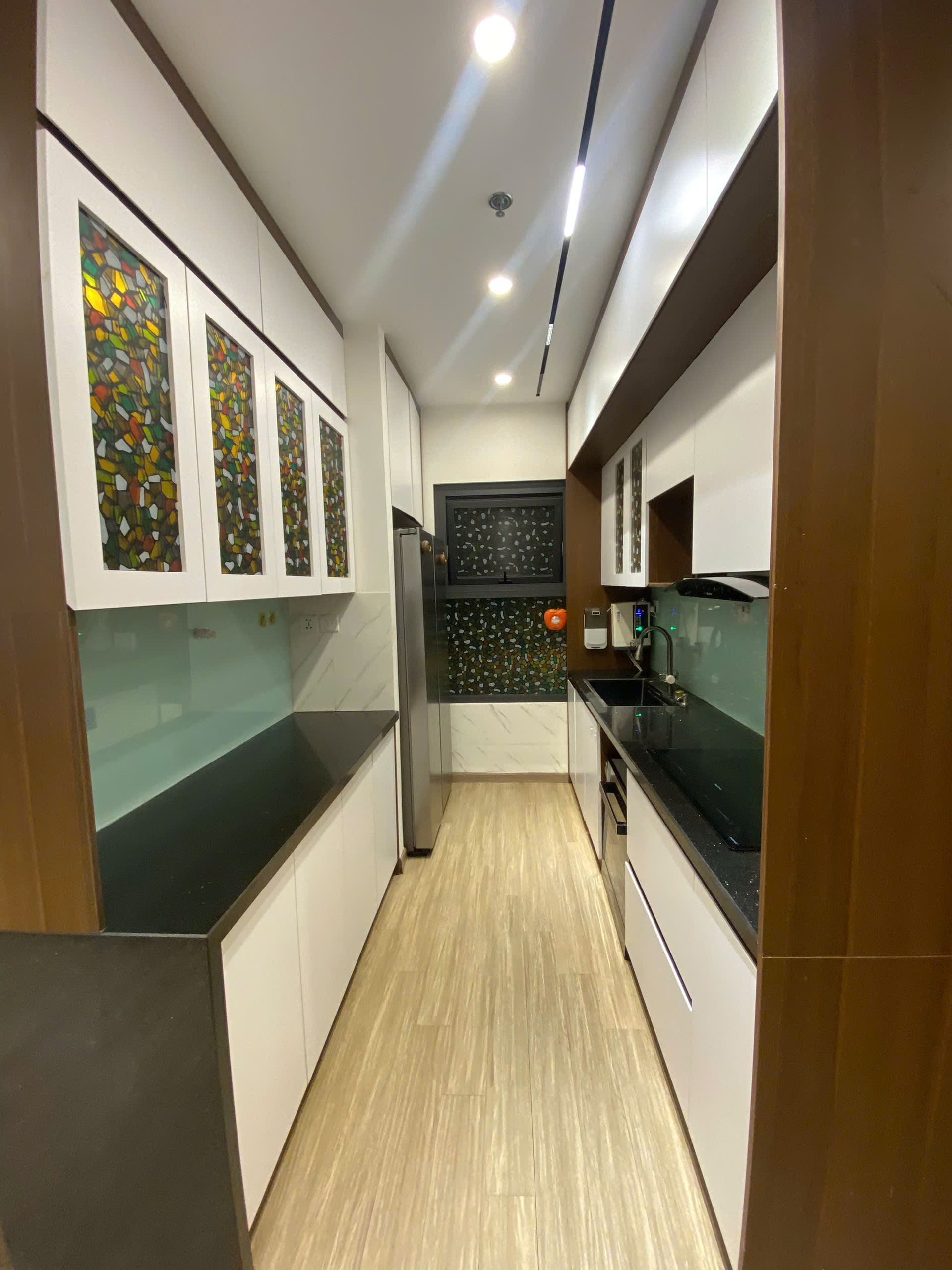 Trang bị đầy đủ: tủ lạnh lớn, máy rửa bát, bồn tắm, ghế massage