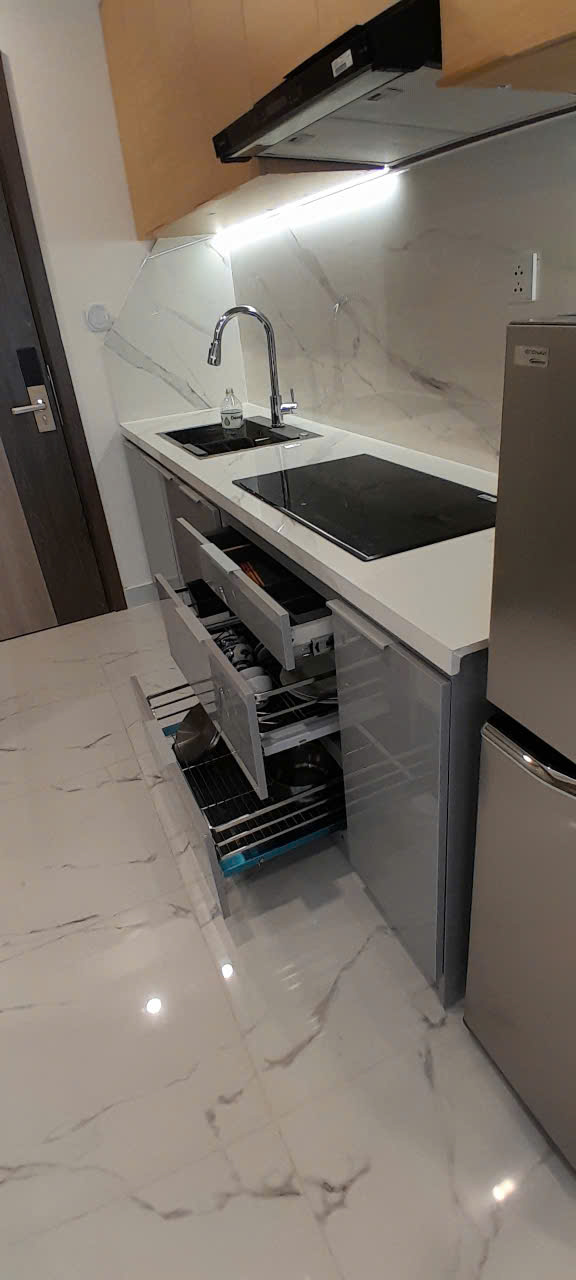 Căn hộ có sẵn máy giặt, tủ lạnh, đáp ứng trọn vẹn nhu cầu sinh hoạt hằng ngày.