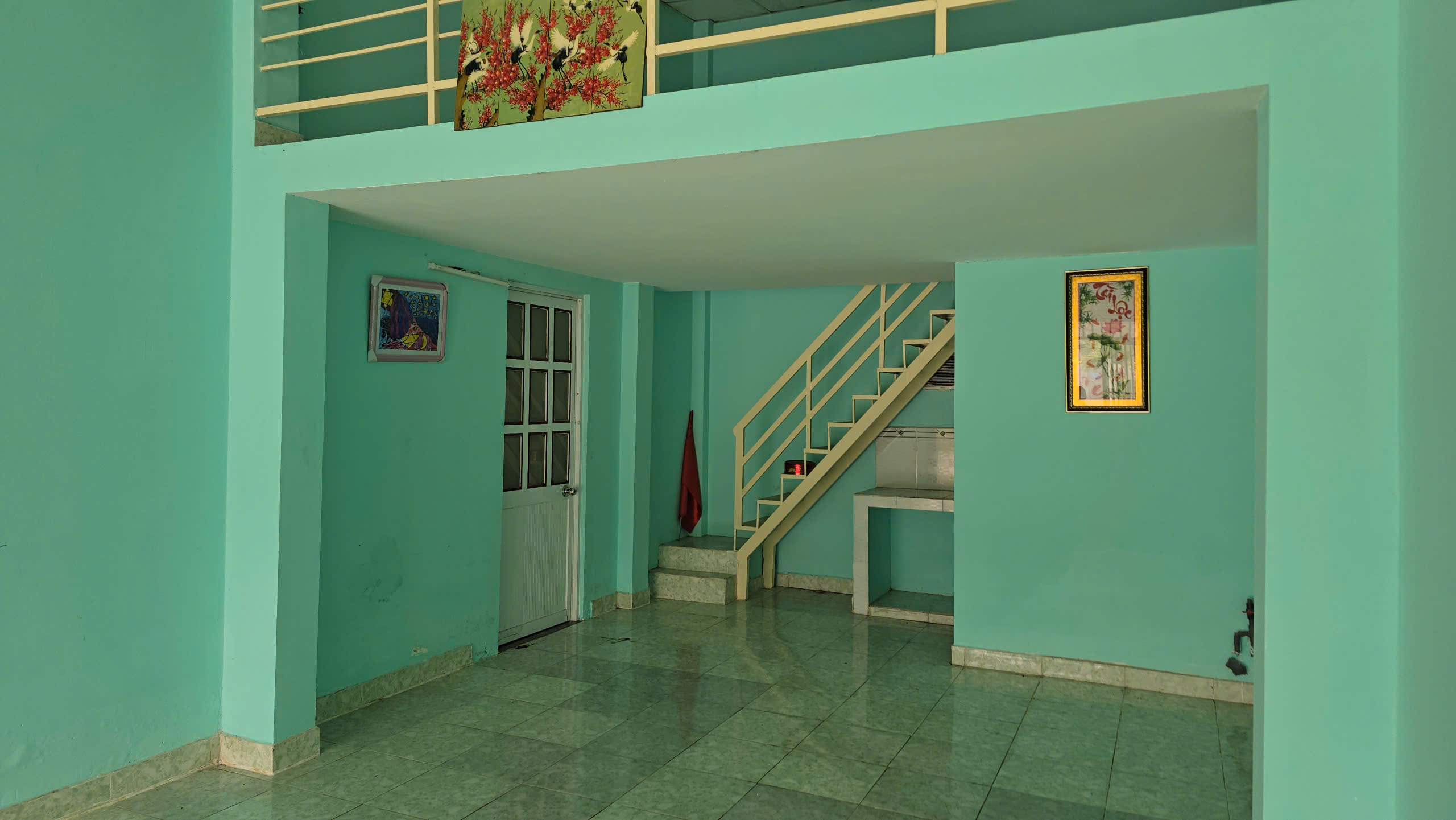 - Diện tích: nhà ngang 8 m x 15 m ( đất ngang 9,7 m x dải 38 m); gác lửng 4m x 5 m; 01 phòng tắm, bàn bếp; phía sau nhà có 03 nhà kho kết cấu khung sắt mái tôn.