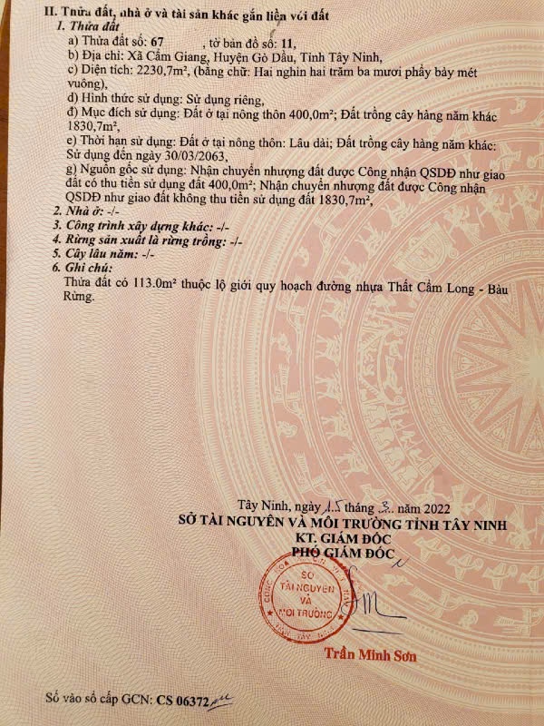 - Có 400 m² thổ cư, còn lại là đất trồng cây lâu năm — dễ chuyển đổi mục đích sử dụng.