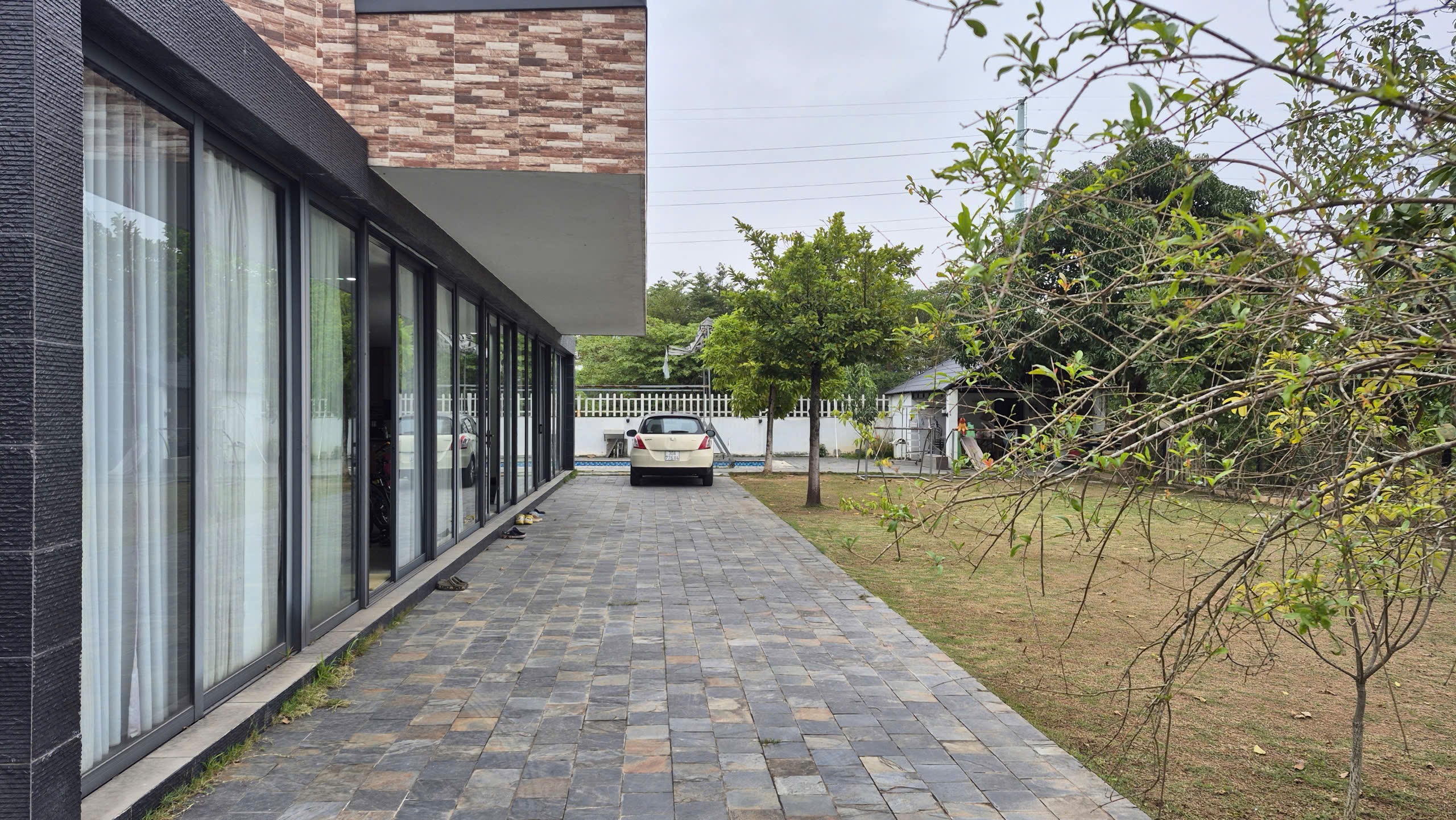 Diện tích khuôn viên rộng 1.200m², sân vườn thoáng đãng, nhiều cây xanh